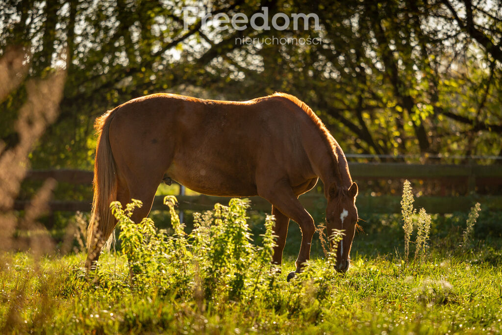 działka, na której konie czują się swobodnie i bezpiecznie.