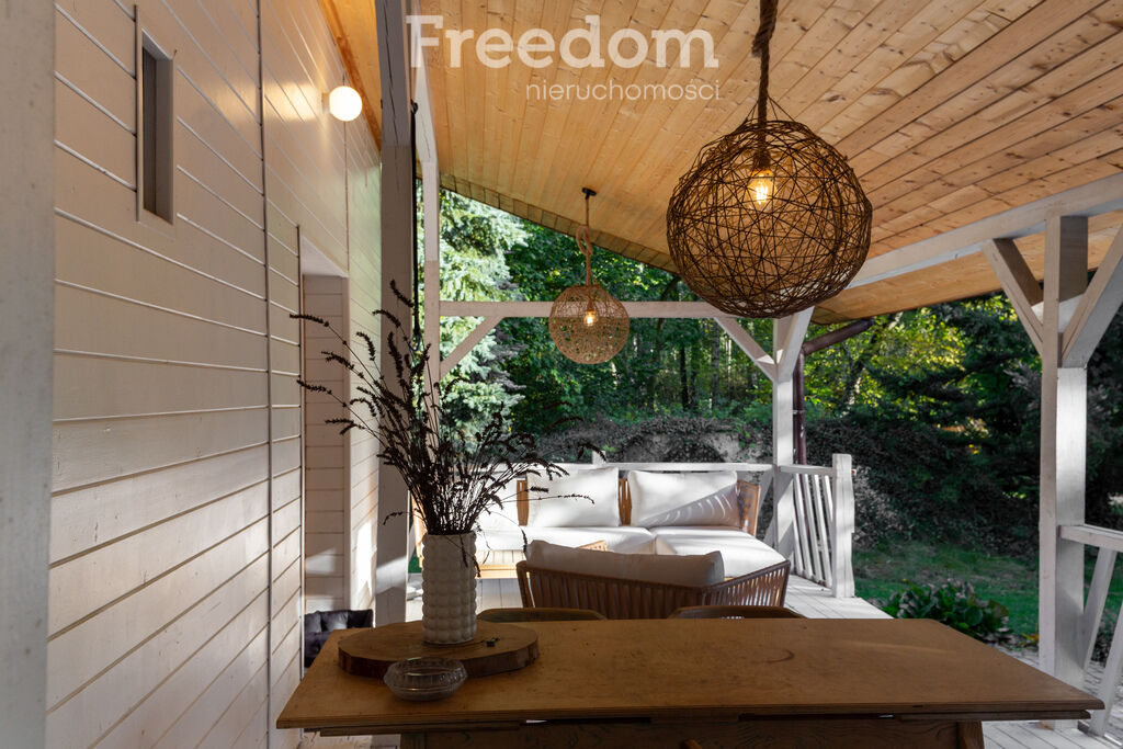 Taras, z białą balustradą i nastrojowymi lampionami, staje się