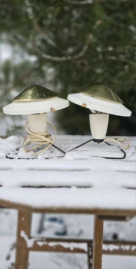 Lampa stołowa wyprodukowana w zakładach ZUKOV typ. 6642. Czechosłowacja lata 60-te. Wykonana z lakierowanego metalu i mosiądzu. Stan dobry vintage, na elementach lakierowanych drobne odpryski i otarcia, na mosiężnych elementach niewielkie naturalne odbarwienia. Lampa jest sprawna wymaga jednej żarówki z gwintem E14.Dostępne 2 szt.