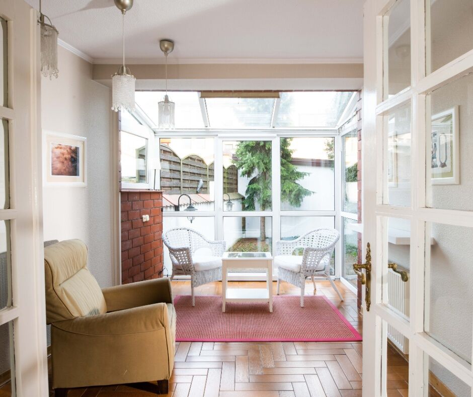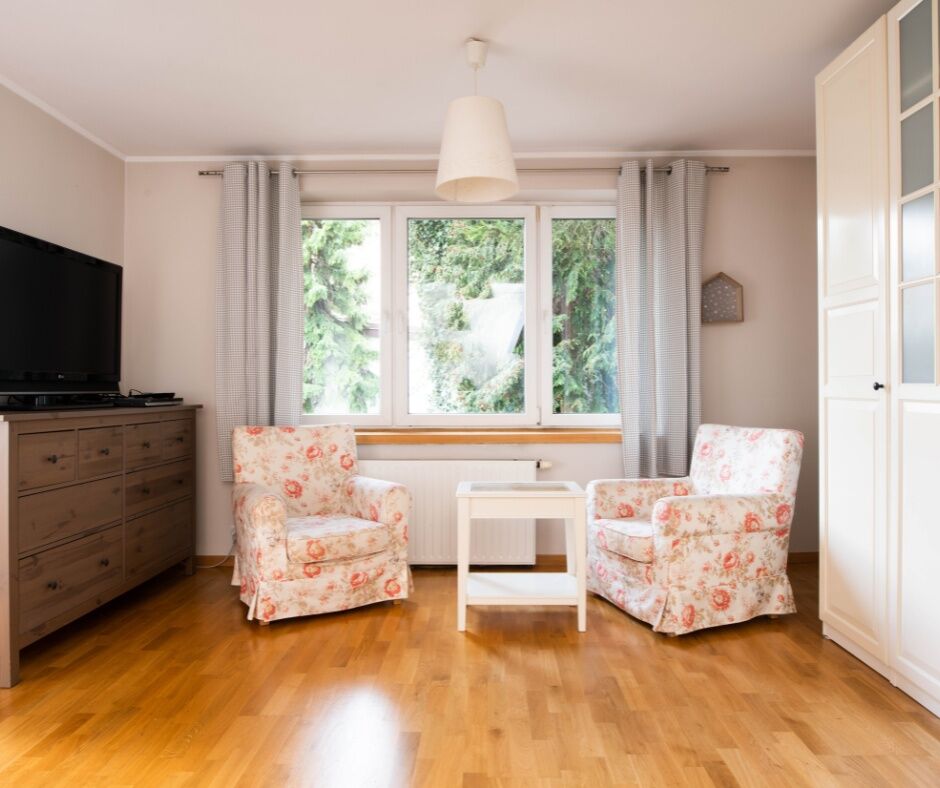 Dom umeblowany (dużo szaf), znajdą też w nim Państwo wszelaki potrzebny sprzęt – zmywarkę, lodówkę i pralkę. Wynajmując mieszkanie, mogą otrzymać Państwo również do użytku dostęp do garażu (do ustalenia). Dom jest ogrzewany gazowe.