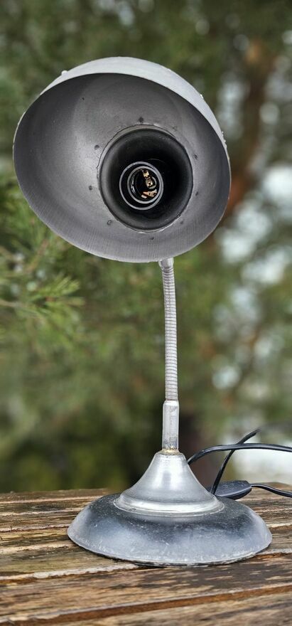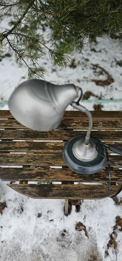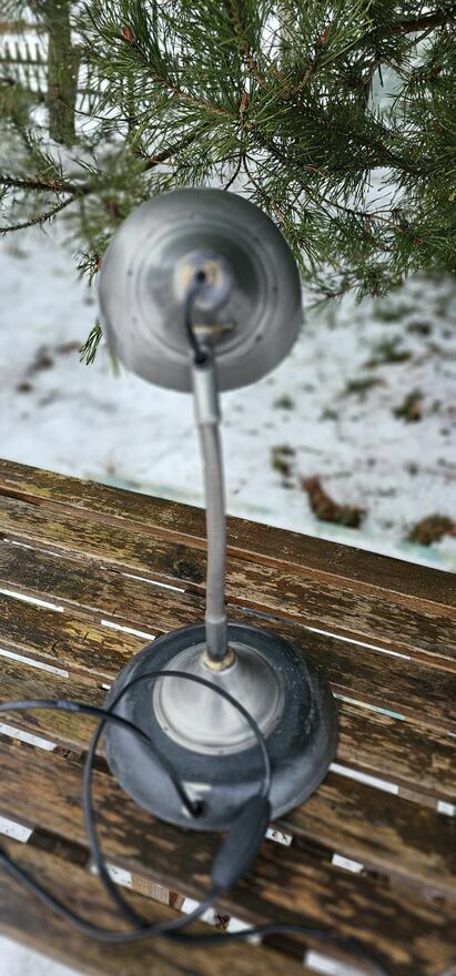 Lampa stołowa włoskiego designu. Wyprodukowana we Włoszech w latach pięćdziesiątych XX wieku. Lampa wykonana z metalu w stylu industrialnym i ma oświetlenie kierunkowe.Dbałość o szczegóły i włoski design tej lampy czyni je niezwykłym dodatkiem do każdego wystroju biura lub salonu!